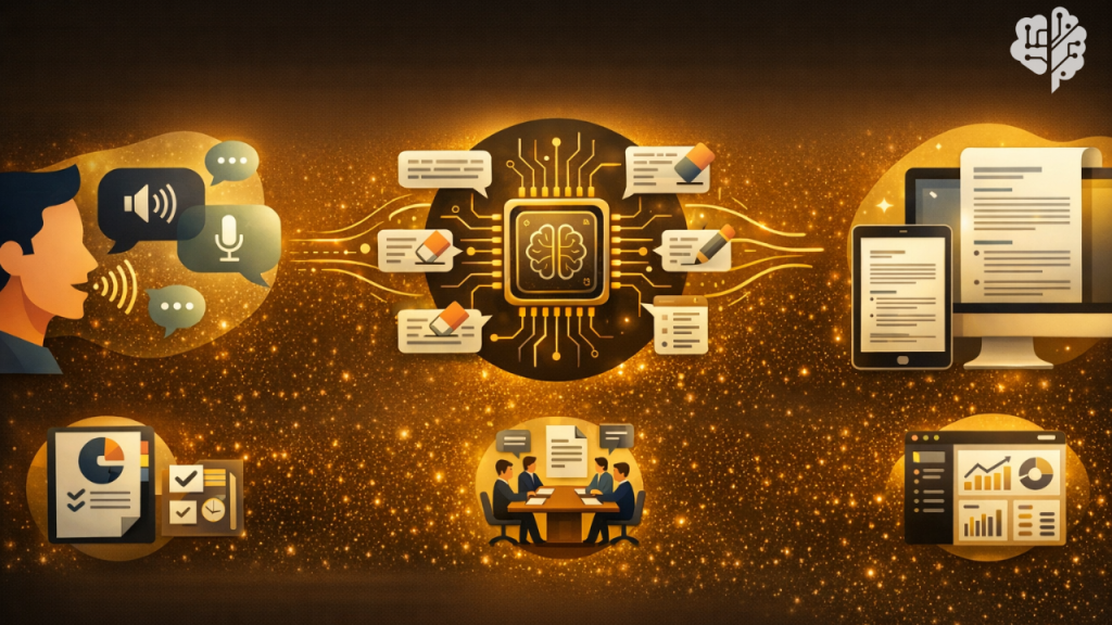 شرح تعليمي لأداة Wispr Flow التي تعتمد على الذكاء الاصطناعي لتحويل الكلام إلى نص مكتوب منسق وجاهز للاستخدام المهني، مع توضيح استخداماتها العملية.