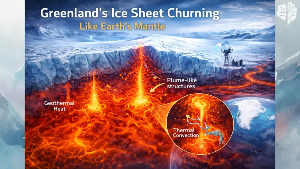 بحث علمي يكشف أن أعماق الغطاء الجليدي في جرينلاند تشهد حركة حرارية شبيهة بحركة الصخور المنصهرة في وشاح الأرض، ما قد يغير فهم العلماء لتوقعات ارتفاع مستوى البحار.